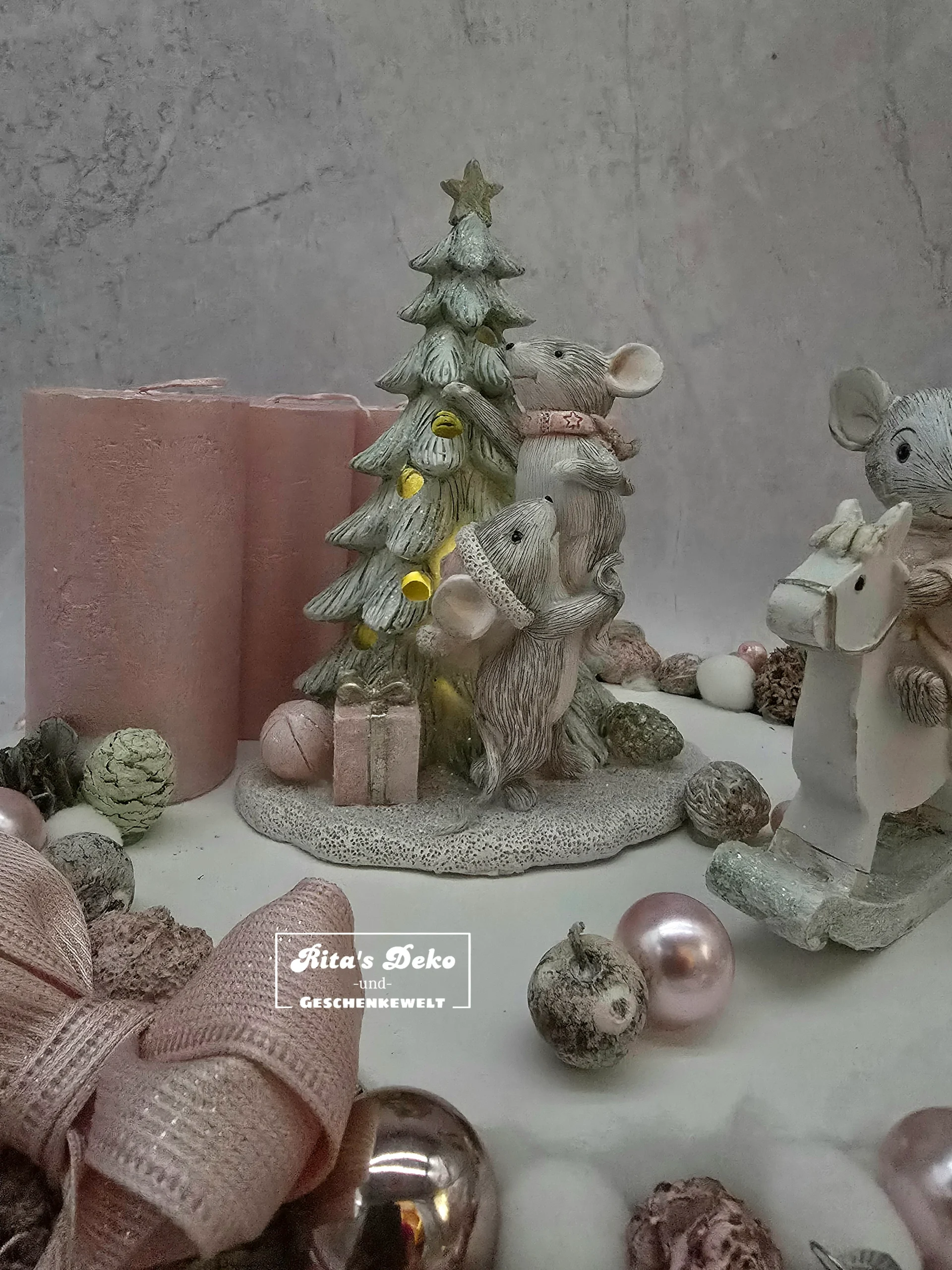 Die kleinen Mäuschen schmücken gemeinsam den Weihnachtsbaum – und die Baumlichter leuchten! ✨