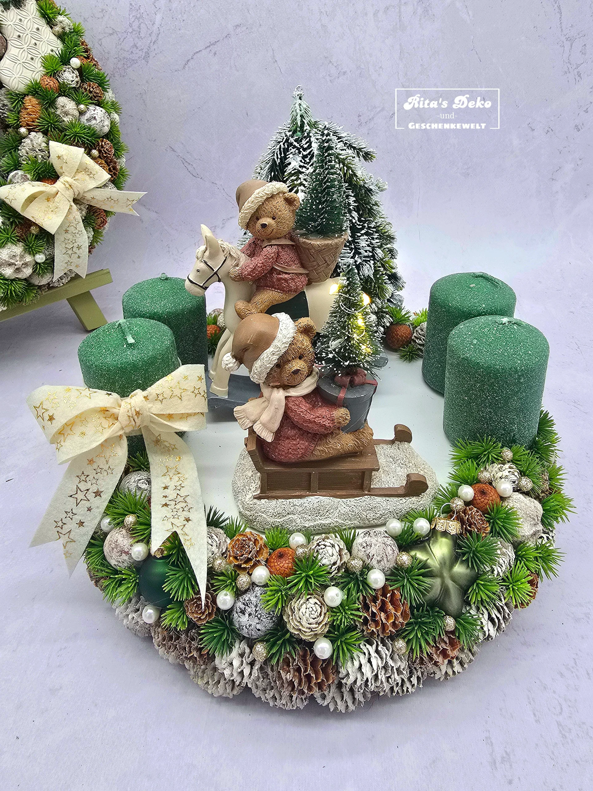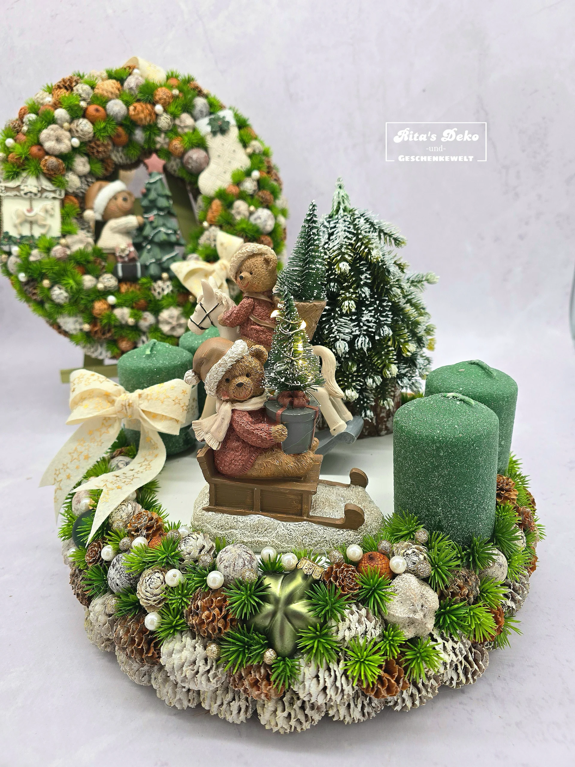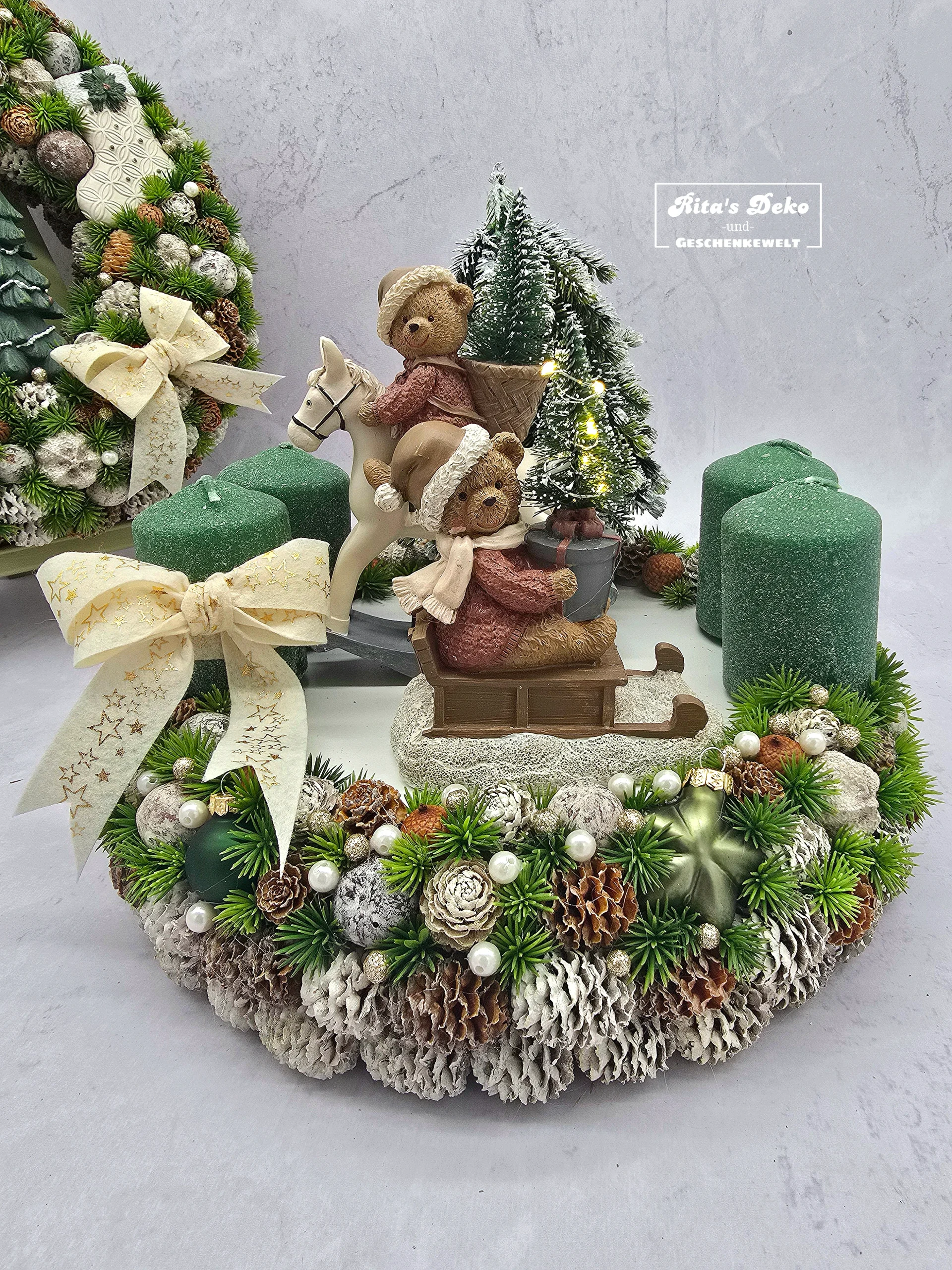 Adventskranz „Winterbären“ – ca. 30 x 30 cm – ✨🐻🛷🌲
