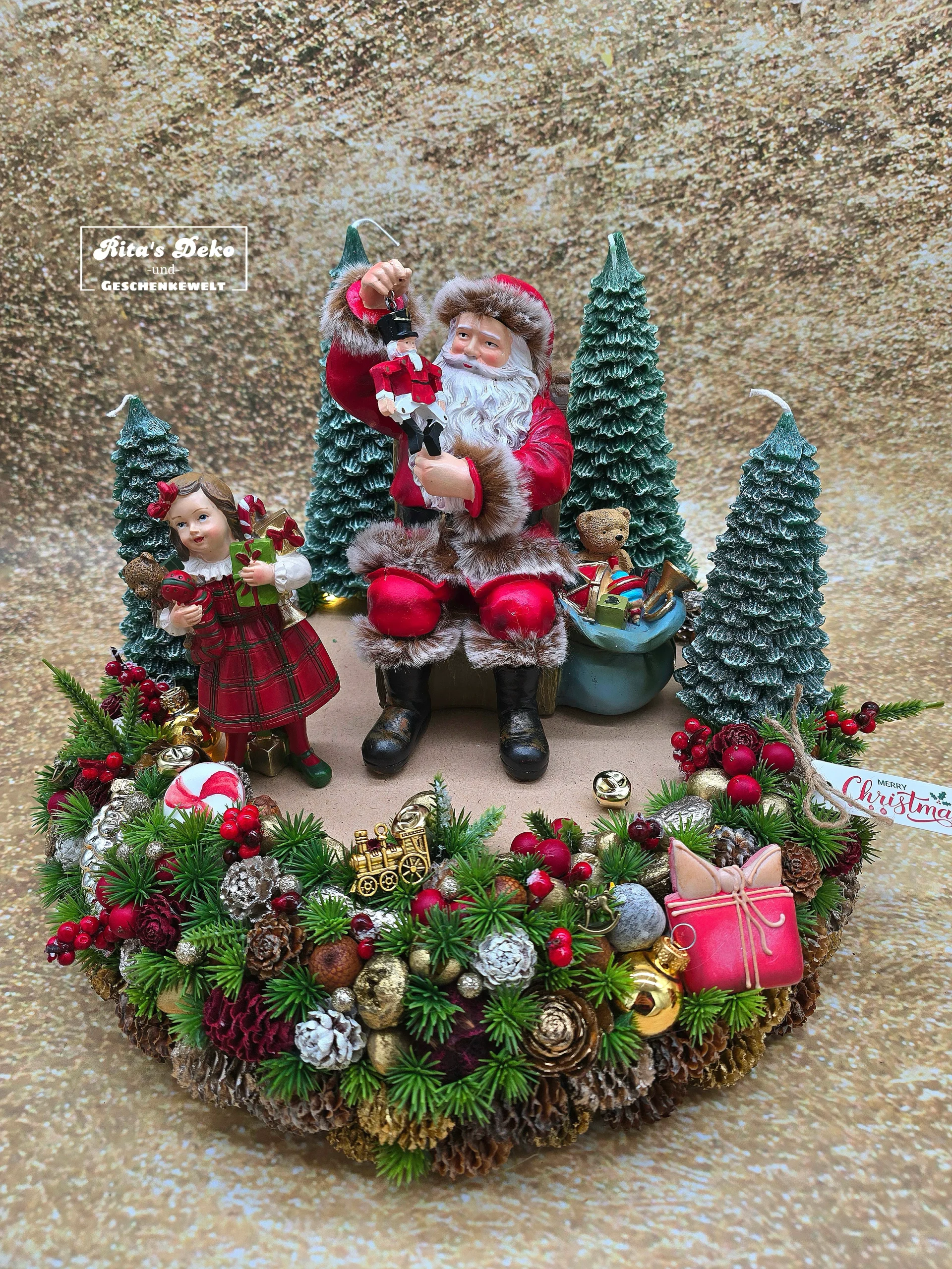 Großer Adventskranz mit Weihnachtsmann – wahlweise mit Mädchen, Junge oder beiden Figuren 🎅🏻🎁🌲