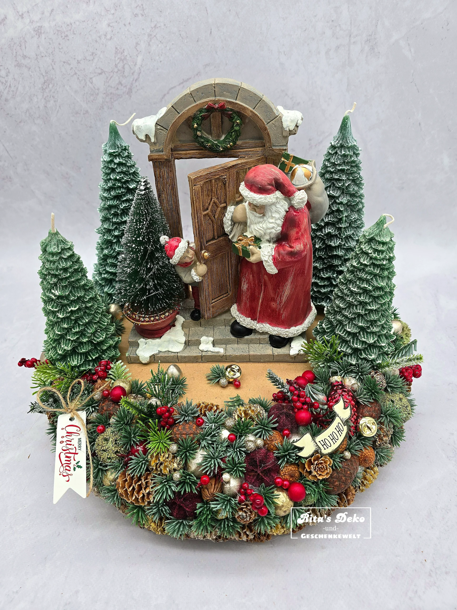 „Weihnachtsmann neben der Tür“ Adventskranz